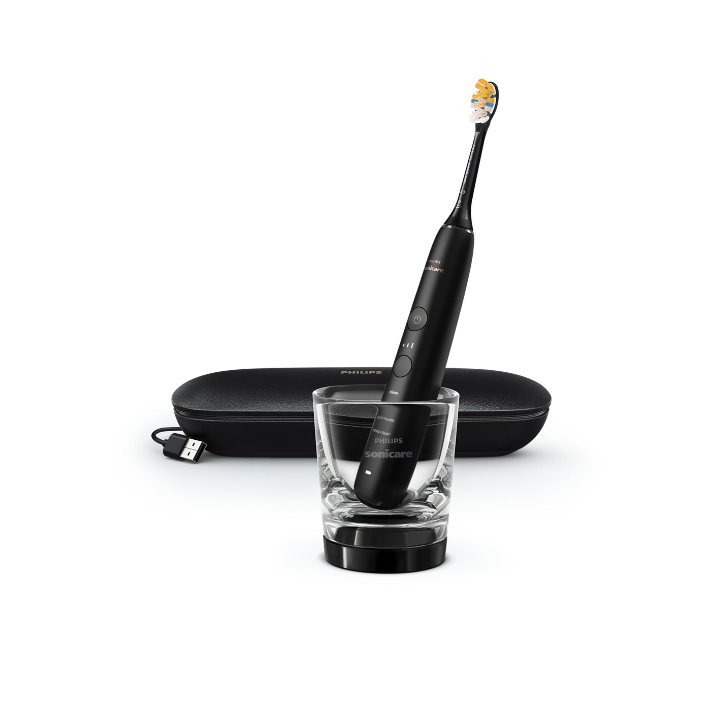 1 bộ sạc tiêu chuẩn dòng DiamondClean ,1 cốc sạc pha lê dòng diamondclean ,1 đầu bàn chải Philips A3 ,1 hộp sạc du lịch dòng DiamondClean ,Thân bàn chải |